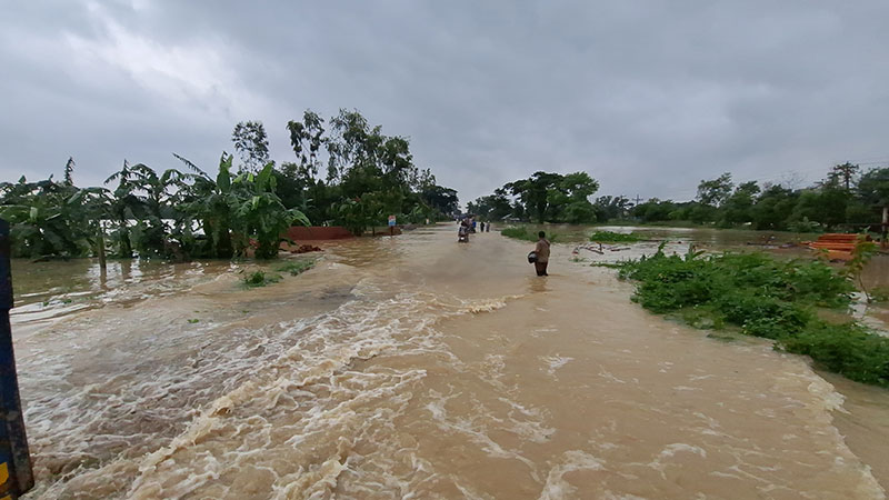 While eastern parts of Bangladesh are already grappling with flooding, water levels in several rivers in the northern region, including the Teesta, are rising alarmingly. Continuous rainfall and upstream water flow have caused the Muhuri, Kahua, and Silonia rivers in Feni district to breach their flood control embankments, flooding over 100 villages. However, with rainfall easing slightly, the flood situation in Parshuram upazila has improved somewhat. Still, floodwaters from Phulgazi are now moving into Chhagalnaiya and Feni Sadar upazilas.