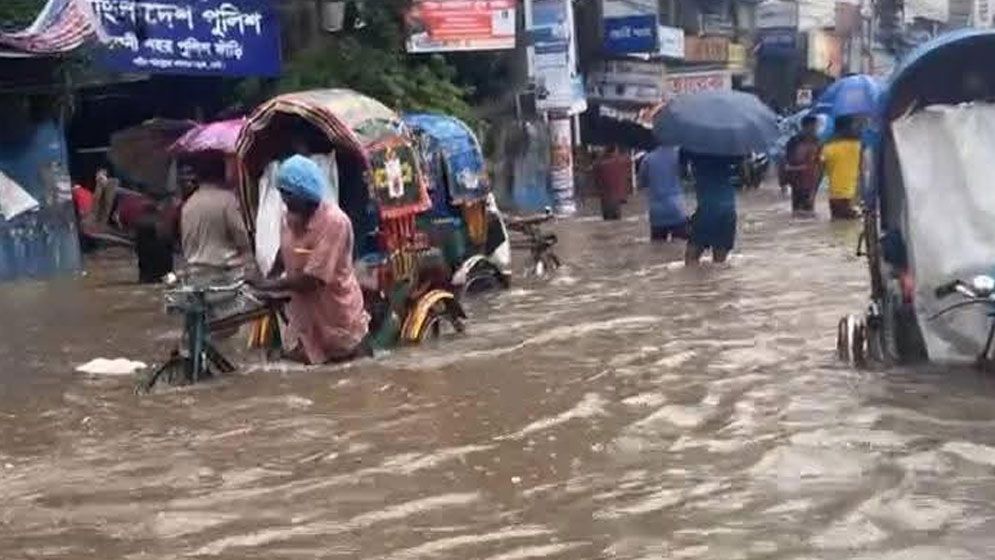 Feni town has gone underwater after continuous rain due to the construction of markets by occupying and filling canals and drains across the city. Residential areas and roads are submerged as a result.