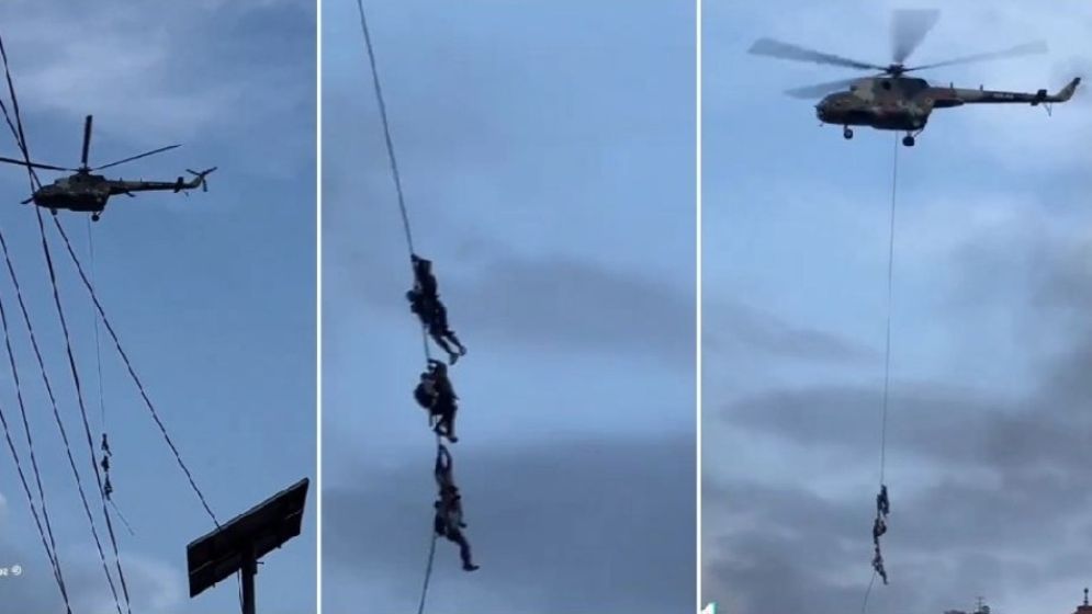 হেলিকপ্টারের দড়িতে ঝুলে পালালেন নেপালের মন্ত্রীরা