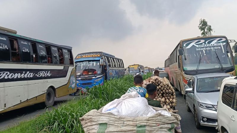 A massive tailback has formed on the west side of the Jamuna Bridge as a surge of Dhaka-bound travelers has put immense pressure on the highway. Traffic on the Dhaka-bound lane from Jamuna Bridge West to Saidabad has come to a virtual standstill, causing immense suffering for thousands of passengers. Since Friday morning (June 13), heavy congestion of buses, private cars, microbuses, motorcycles, and goods-laden vehicles has stretched from the western end of the bridge to Saidabad, with passengers stuck for up to 30 minutes in some areas.