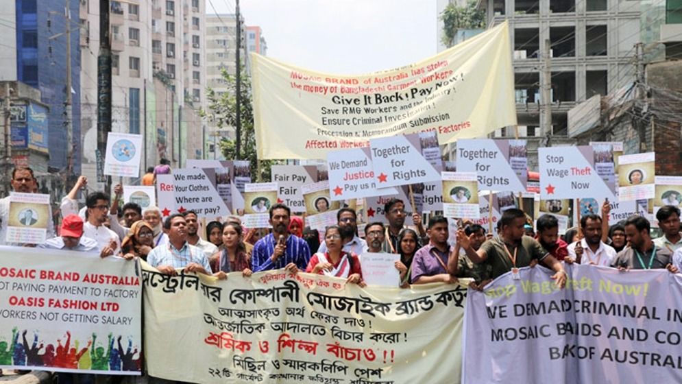 অস্ট্রেলিয়ার ‘মোজাইক ব্র্যান্ডে’র আত্মসাৎকৃত অর্থ ফেরত আনা ও প্রতারণার হাত থেকে শ্রমিক এবং শিল্প রক্ষায় আন্তর্জাতিক আদালতে বিচারের দাবিসহ পাঁচ দফা দাবিতে অস্ট্রেলীয় হাইকমিশনের সামনে বিক্ষোভ সমাবেশ করা হয়েছে।