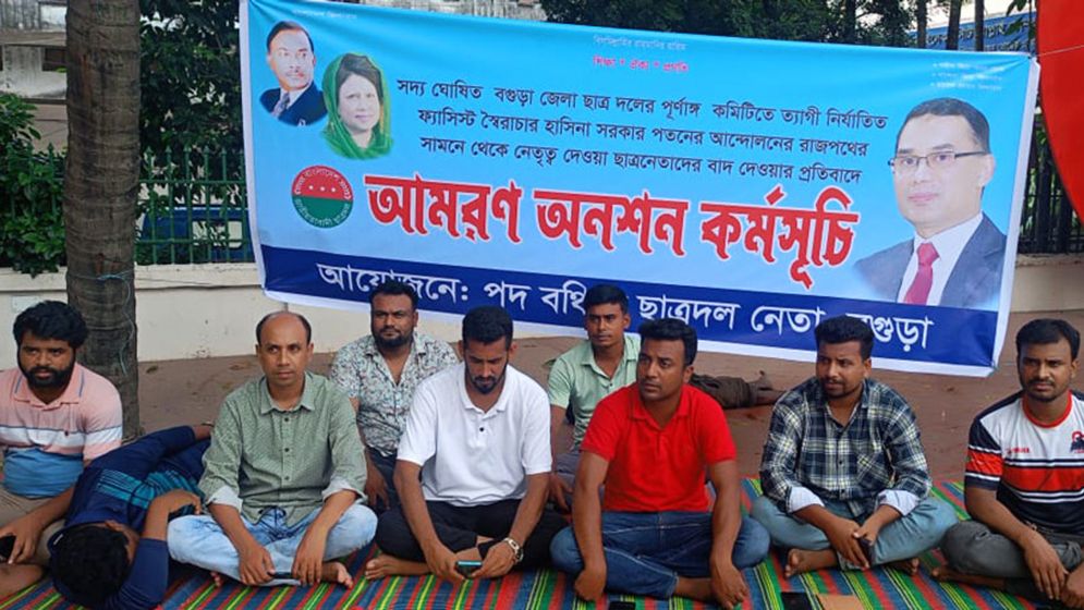 Discontented leaders and activists who were denied positions in the newly announced full committee of the Bogura District unit of Jatiyatabadi Chhatra Dal (JCD) have begun a hunger strike unto death. The protest started on Thursday afternoon at the Shaheed Minar in Shaheed Khokon Park, in the heart of Bogura town.