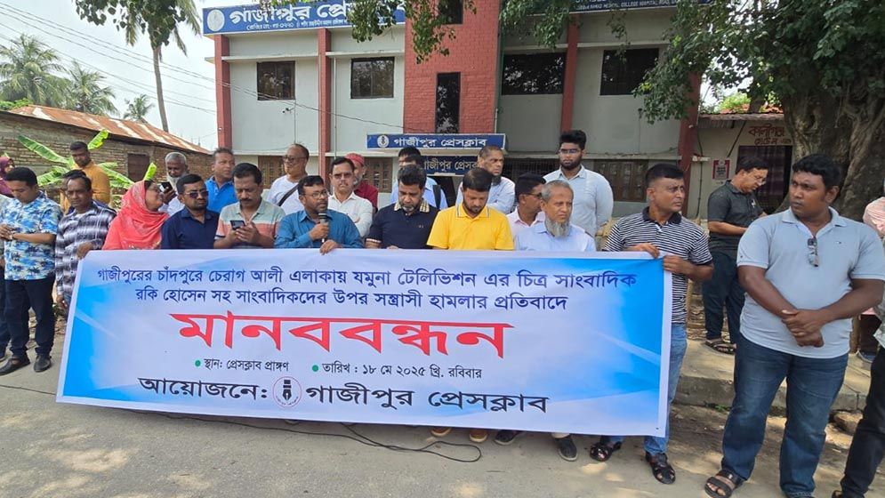 গাজীপুরের কাপাসিয়ায় সাংবাদিকদের ওপর সন্ত্রাসী হামলার প্রতিবাদে রোববার মানববন্ধন করেছে গাজীপুর প্রেস ক্লাব। হামলার ঘটনায় কাপাসিয়া থানায় মামলা করা হয়েছে। ঘটনার সঙ্গে জড়িত উপজেলা স্বেচ্ছাসেবক দলের সভাপতিসহ অভিযুক্ত দুইজনকে গ্রেফতার করেছে পুলিশ।