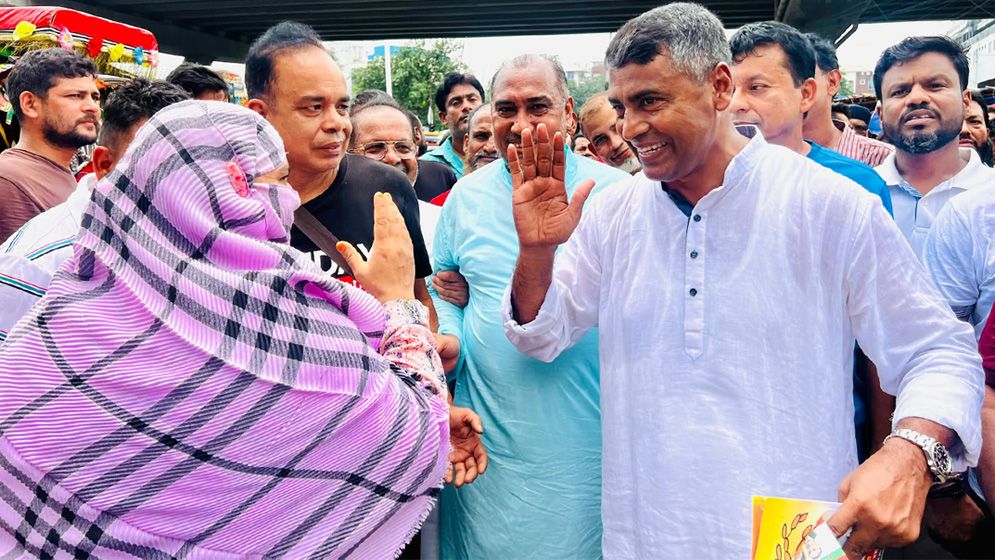 He and local activists engaged with residents, shopkeepers, pedestrians, and rickshaw-pullers, sharing greetings on behalf of party chairperson Khaleda Zia and distributing the reform plan.