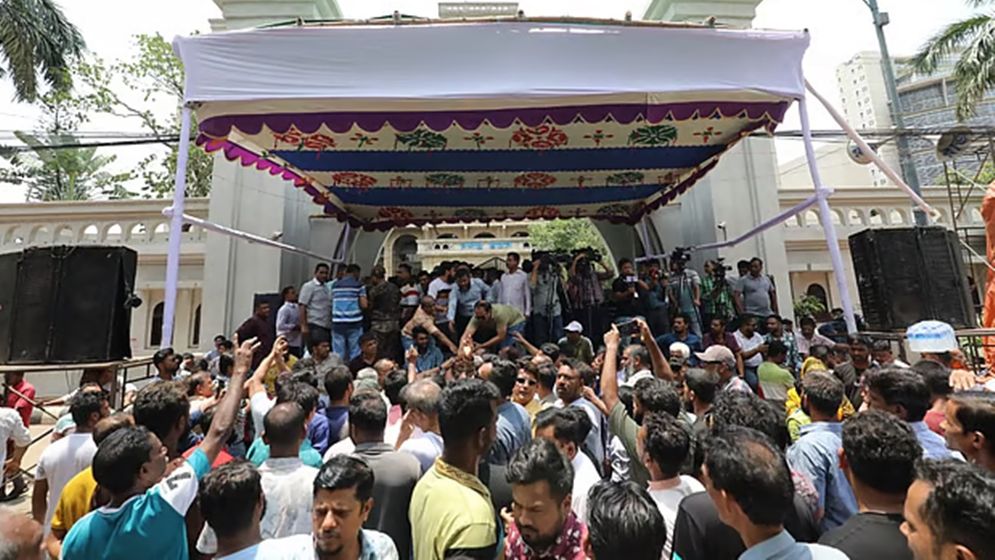 Supporters of Ishraq Hossain are staging a sit-in at the main gate of Dhaka South City Corporation (DSCC), demanding he be appointed mayor. Protesters have locked the city building gates and blocked roads at Golap Shah Mazar, halting all vehicular traffic. City services have been suspended since 10 a.m. Protesters are also demanding the removal of adviser Asif Mahmud and an end to delays in the swearing-in process. BNP leaders, affiliate organizations, and a segment of DSCC employees have joined the demonstration in solidarity.