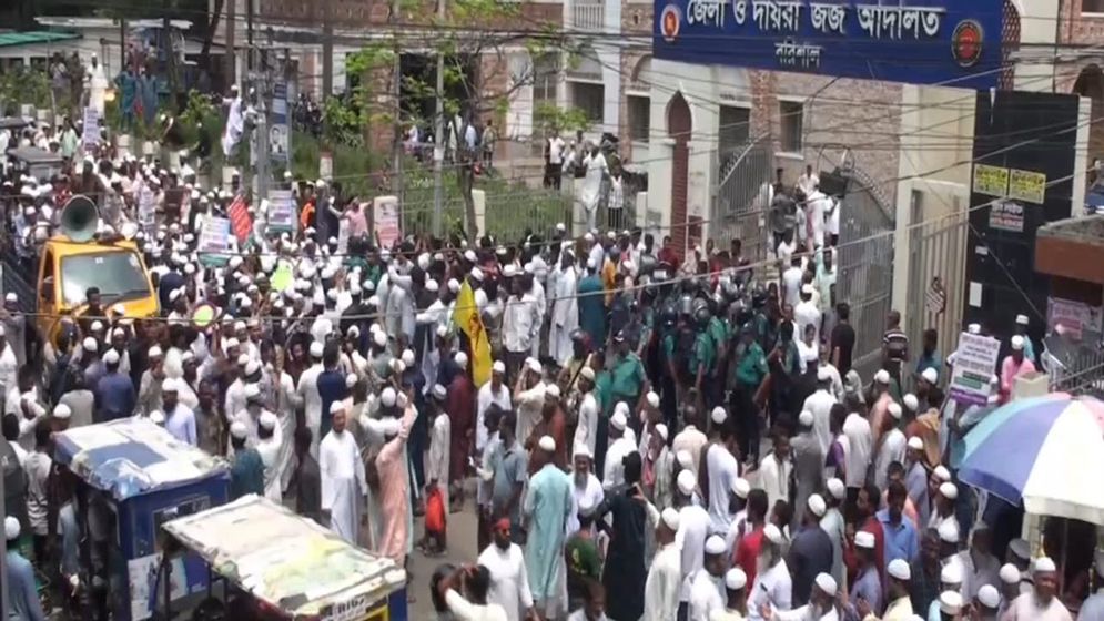 আদালত ঘেরাও করে বিক্ষোভ চরমোনাই পিরের ভাইয়ের অনুসারীদের