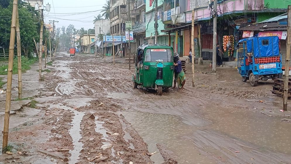 Continuous rainfall over the past five days has led to waterlogging in several areas of Raipur Municipality under Lakshmipur district. The drainage system on the main roads is in a fragile state and clogged with waste. Drainage work in the Notun Bazar area has been proceeding slowly for the past month.