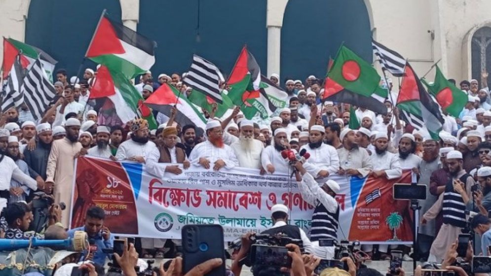 ওয়াকফ বিল পাসের প্রতিবাদে বায়তুল মোকাররমে জমিয়তে উলামায়ে ইসলামের বিক্ষোভ