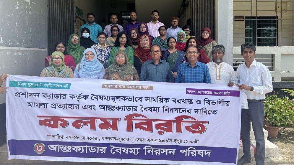 On Tuesday, civil servants from 25 Bangladesh Civil Service (BCS) cadres observed a pen-down strike protesting discriminatory actions by the administration cadre. Under the banner of the Inter-Cadre Discrimination Elimination Council, the protest was in response to unjust suspensions and departmental actions against officials from other cadres. Emergency services, including hospital ERs, were excluded from the strike. Organizers announced that similar protests would be held nationwide again tomorrow.