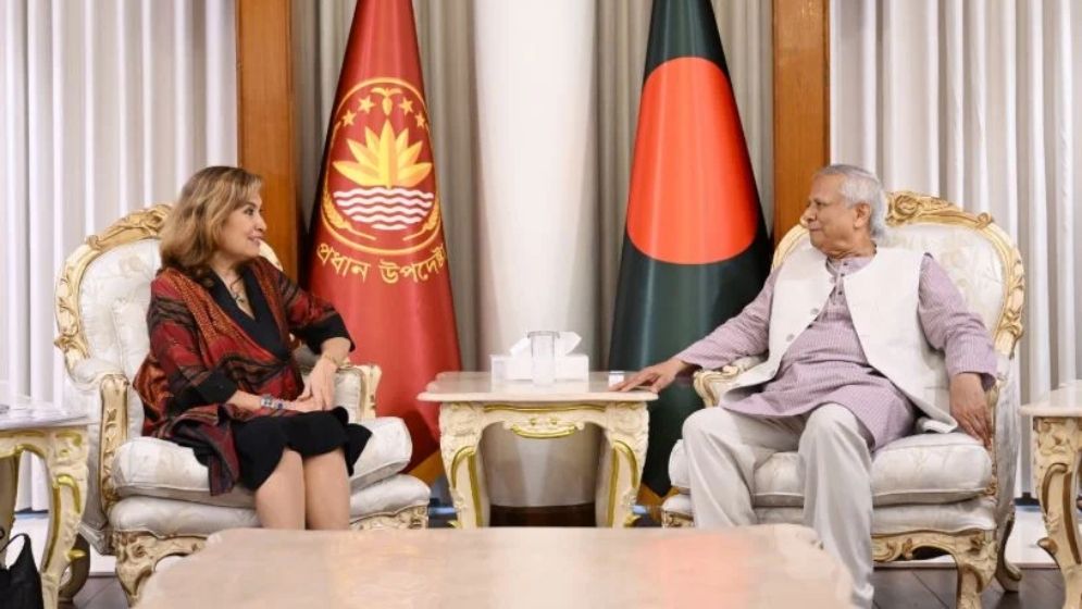 ২০২৫-২৯ মেয়াদে ইউনেস্কোর মহাপরিচালক পদে মেক্সিকোর প্রার্থী গাব্রিয়েলা রামোস পাতিনার গতকাল রোববার ঢাকায় রাষ্ট্রীয় অতিথি ভবন যমুনায় প্রধান উপদেষ্টা অধ্যাপক মুহাম্মদ ইউনূসের সঙ্গে সাক্ষাৎ করেছেন। বৈঠকে বাংলাদেশে মেক্সিকোর অনাবাসিক রাষ্ট্রদূত ফেডেরিকো সালাস উপস্থিত ছিলেন।