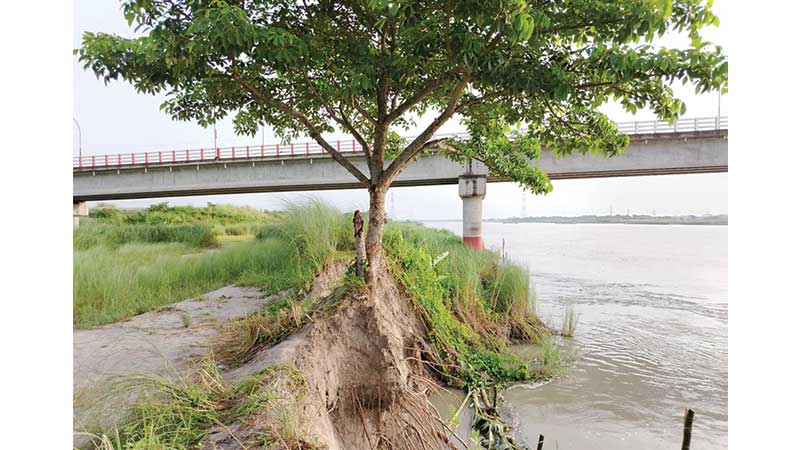 Riverbank Erosion Threatens Bridge over Arial Khan River in Madaripur