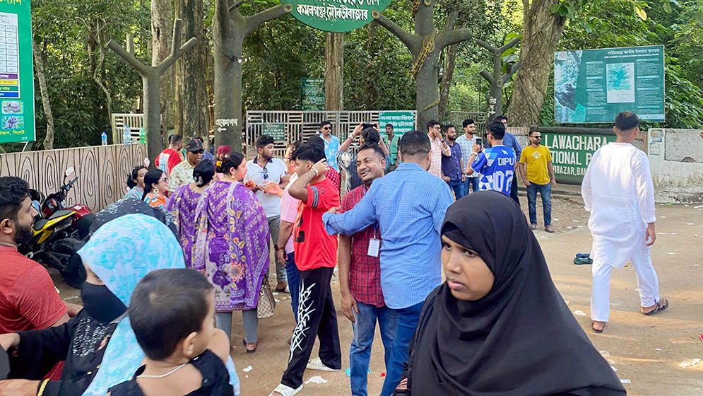 Over the past four days of Eid holidays, Lawachara National Park welcomed 3,946 visitors, generating Tk 450,570 in revenue from entry fees. However, environmental activists have expressed concern about the adverse impact of large crowds on the park’s wildlife. To ensure a safe and enjoyable experience for visitors, members of the tourist police have been deployed throughout the park.