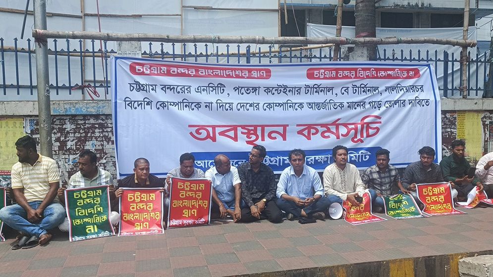 The Chattogram Protection Committee held a sit-in protest from 10 AM to 1 PM on Sunday, opposing any plans to hand over management of the Chattogram Port to foreign companies. Speakers called for dismantling syndicates formed under successive Awami League governments and emphasized that while they are not against foreign investment, there is no justification for outsourcing the management of facilities that the country can operate independently. Tarique Rahman also stated that handing over the port is beyond the mandate of an interim government. Several political and religious groups, including Hefazat-e-Islam, Gano Adhikar Parishad, Jamaat-e-Islami, and the 12-party alliance, have also expressed opposition, asserting that such a decision cannot be made unilaterally by the government.